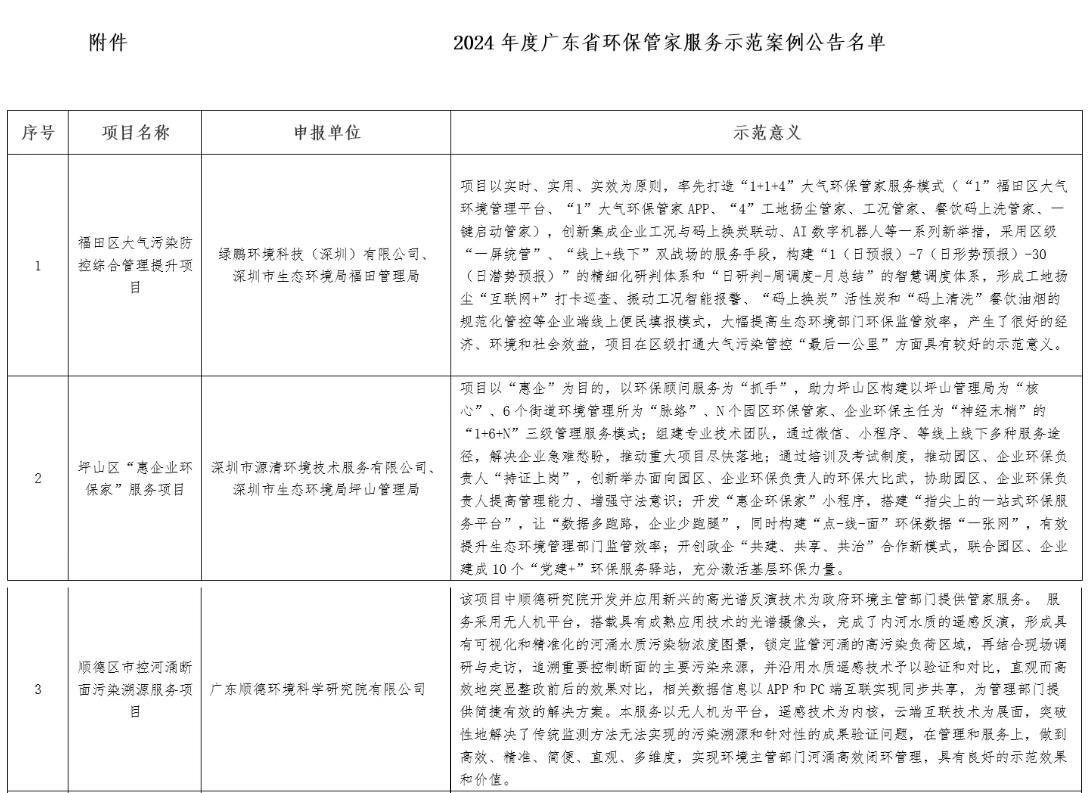 我司環(huán)保管家項(xiàng)目被評為“廣東省環(huán)保管家服務(wù)示范案例”